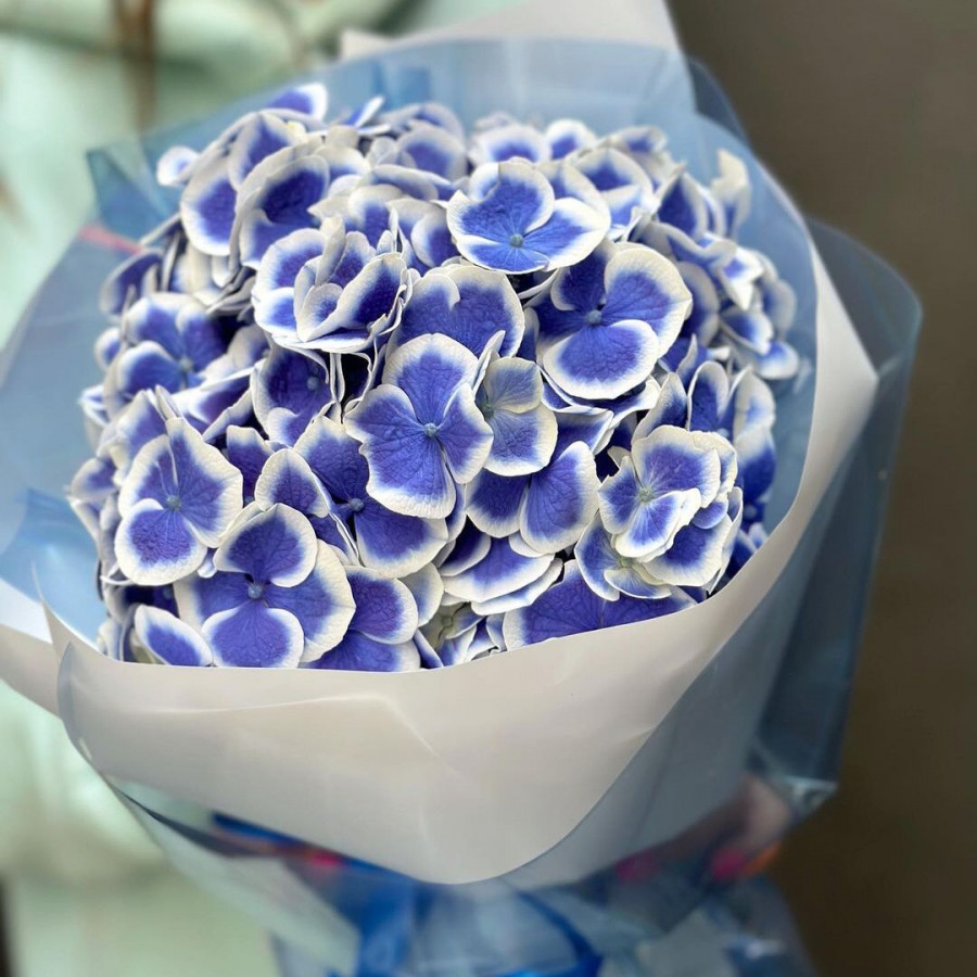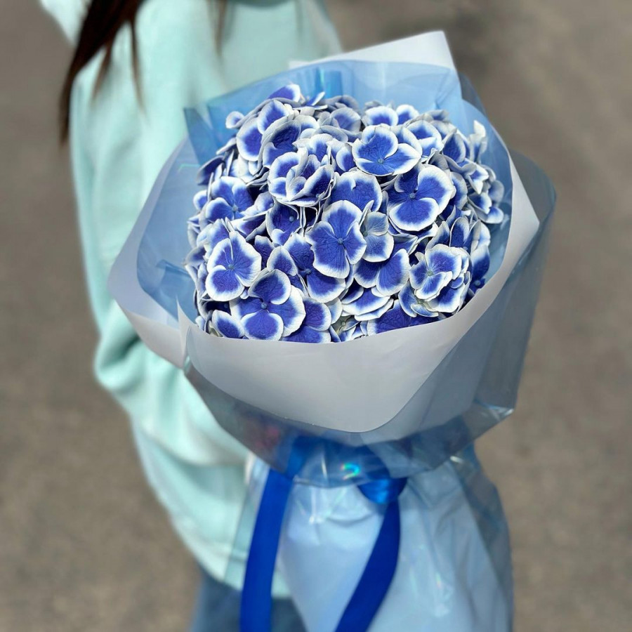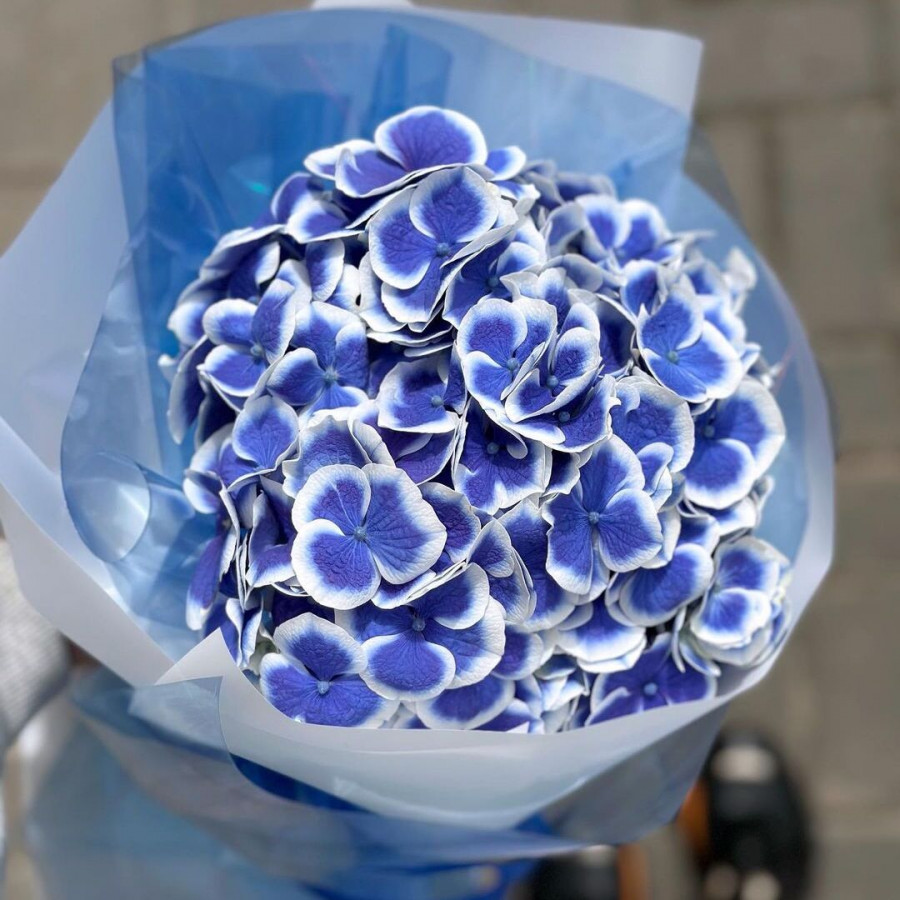 Букет из одной голубой гортензии, завернутый в голубую упаковку, - это элегантный и изысканный подарок для тех, кто ценит стиль и качество. Голубая гортензия символизирует нежность и чувственность, а голубая упаковка добавляет букету утонченности и роскоши. Такой подарок станет прекрасным дополнением к любому торжеству и напомнит о вашей заботе и внимании.