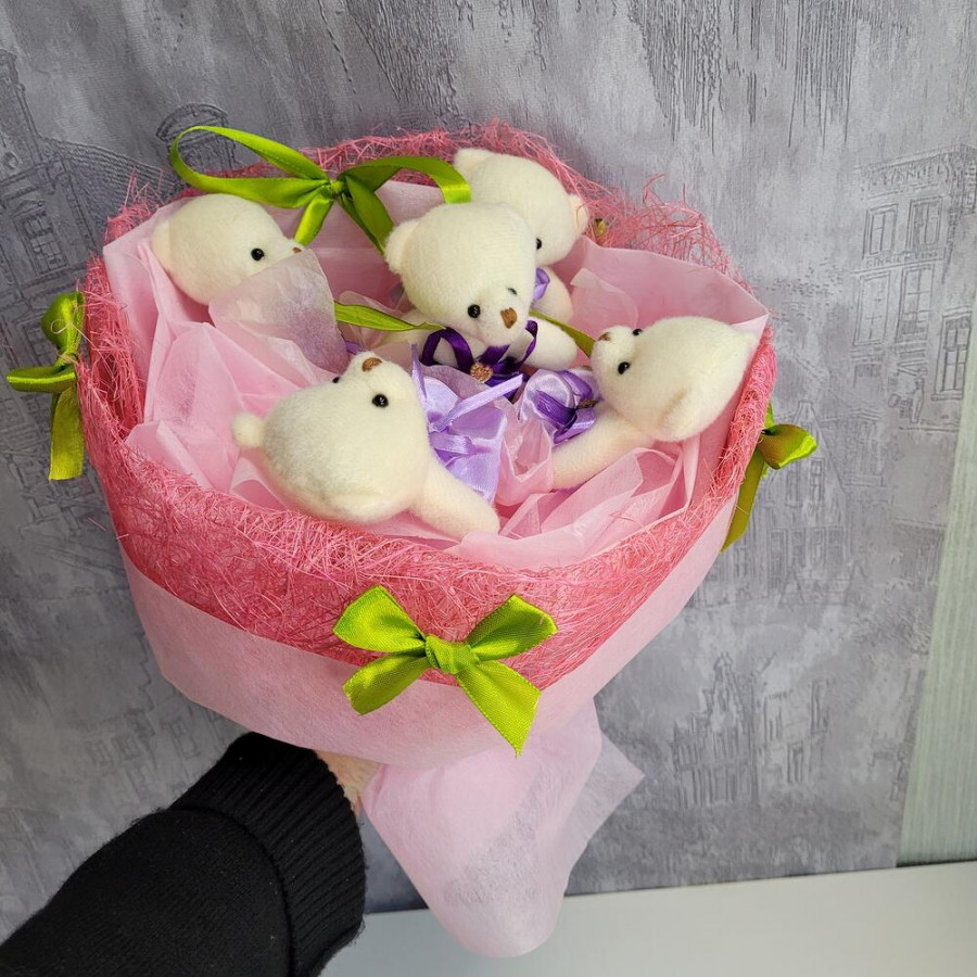 Букет из игрушек мишки 5 шт фото 4
